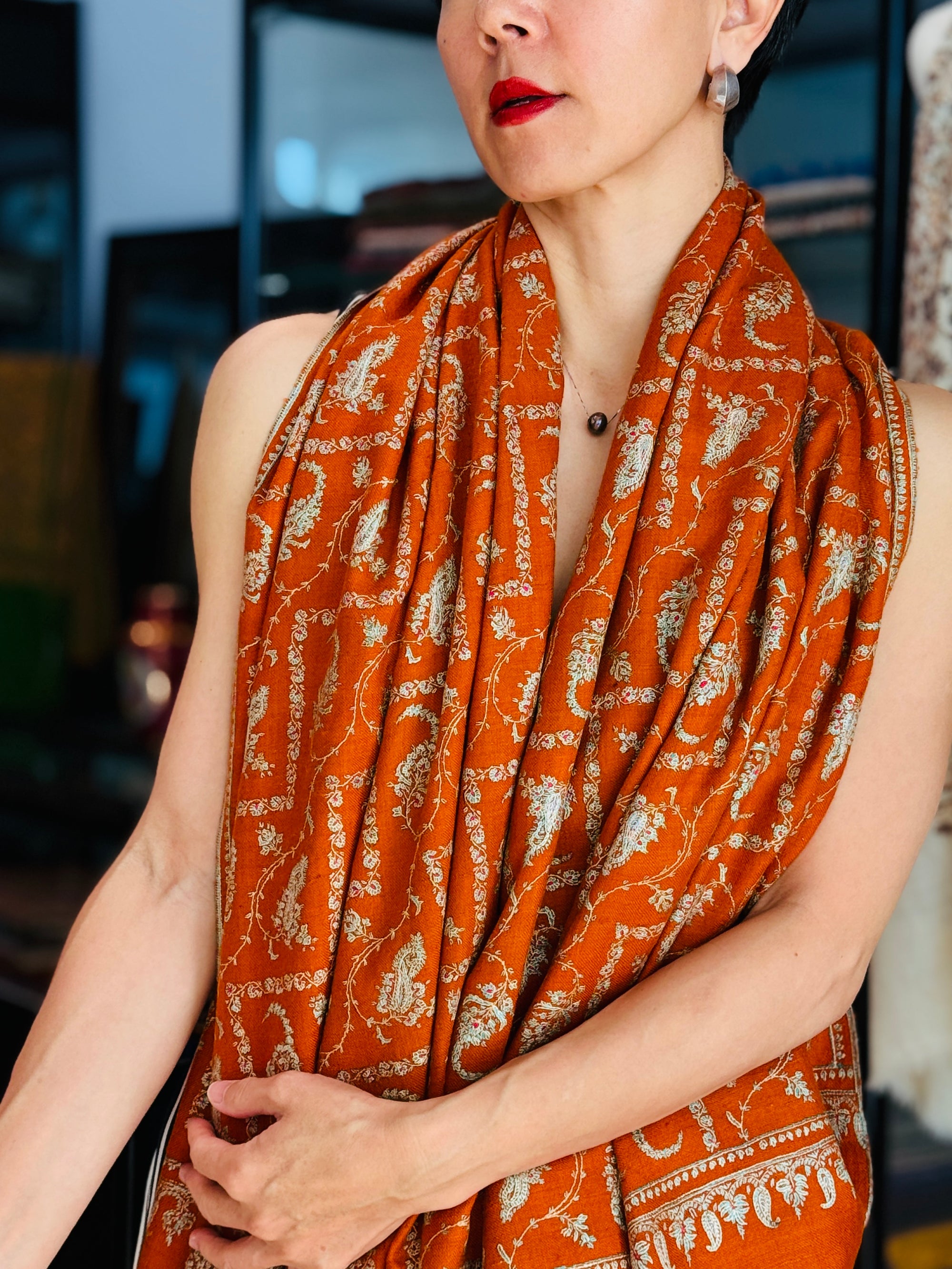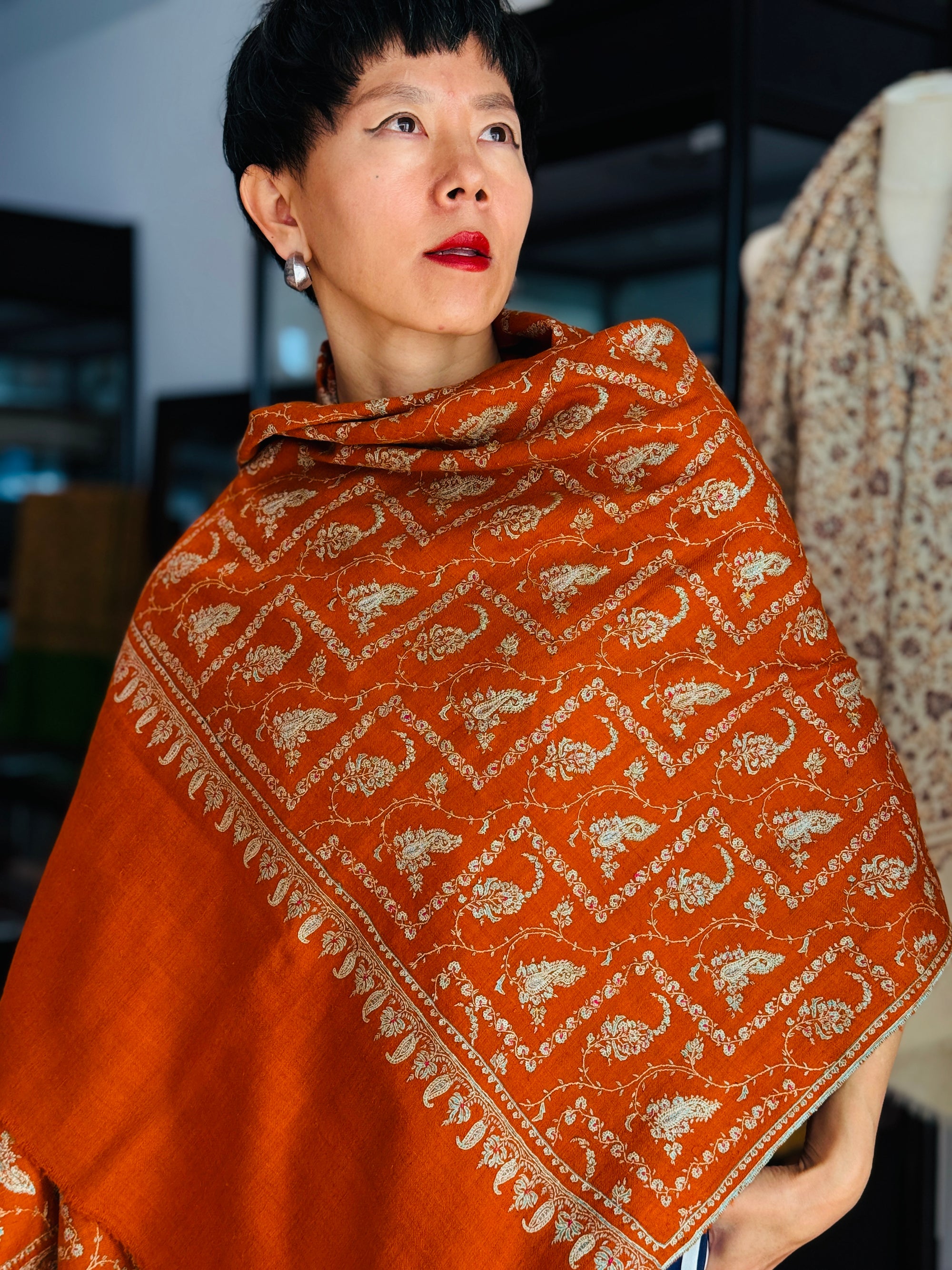 Most of the shawls are made at least 20-30 years back, acquired by our finest specialist from private shawl collectors or enthusiasts. While some of these shawls are completely new and unused, some have been used by clients, mostly in special occasions.