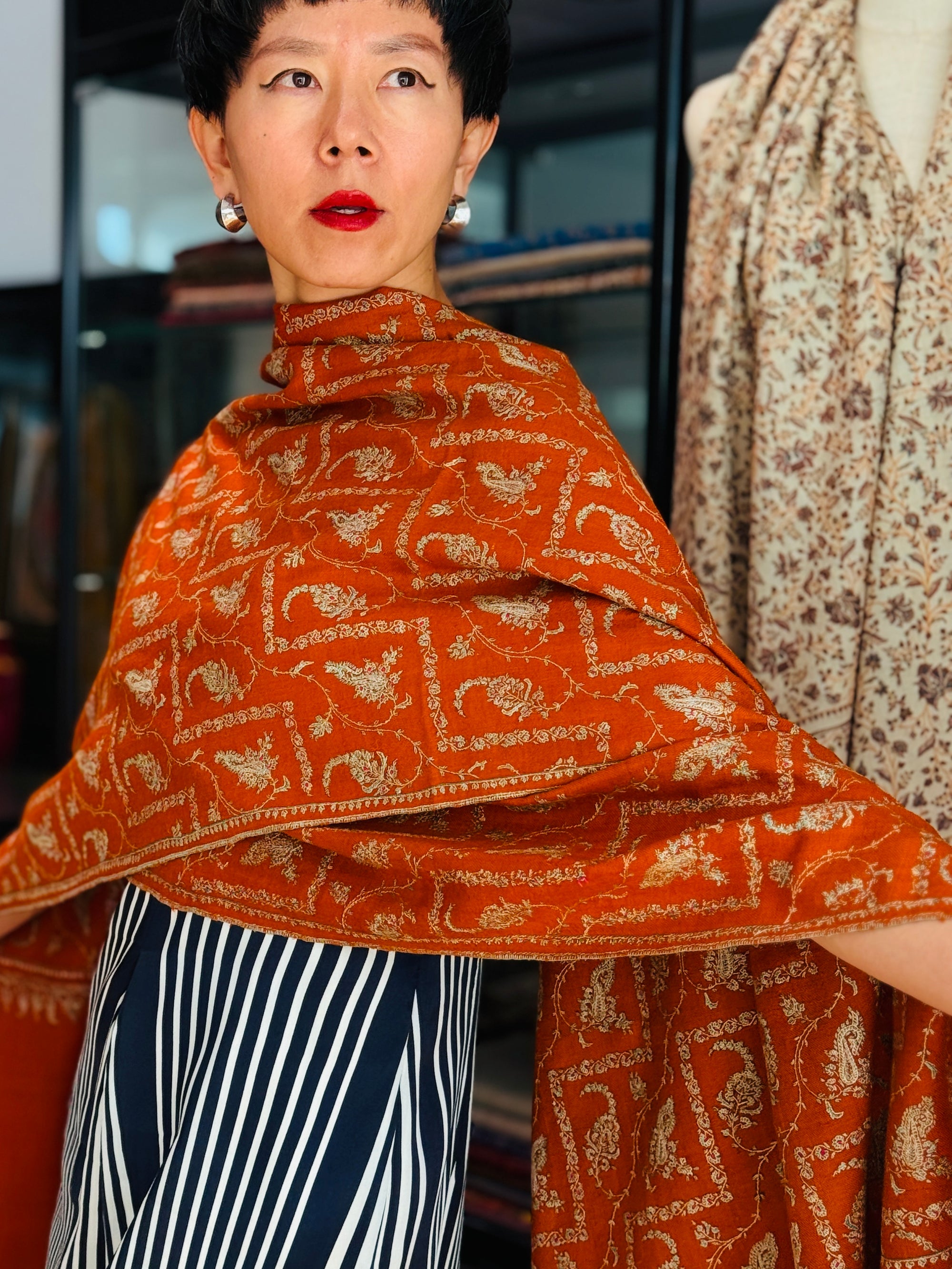 There is such a unique charm to vintage shawls, not only hidden in the ever—so-fine art and craftsmanship that is often lost today, but also the unknown stories and lives it has seen, which we find truly fascinating.