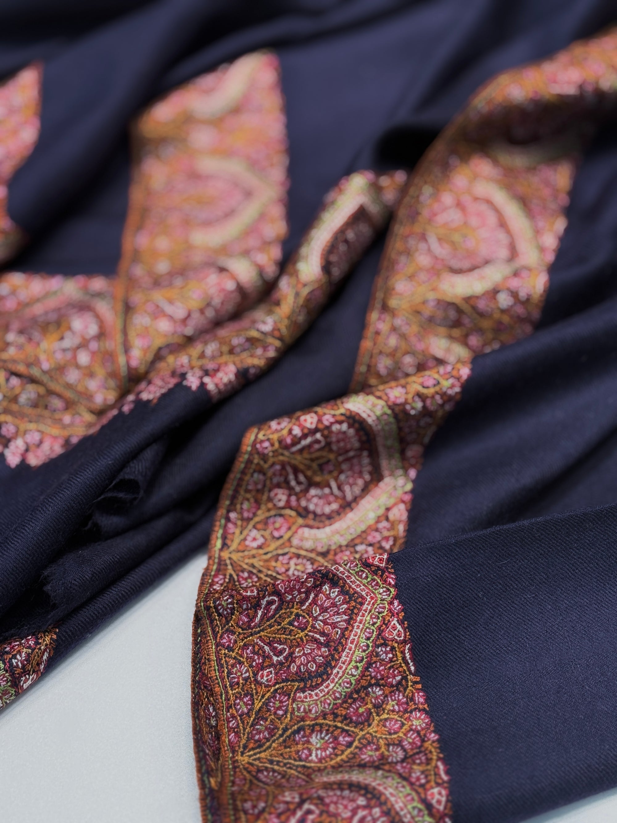 First emerged as a replika of Kani shawl designs, embroidery designs soon became a popular choice, for Kashmiri shawl makers and shawl lovers for their affordability, flexibility and relatively shorter time to make.
